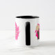 BLACK MATERNAL Health Support Awareness kaffe mugg med ANPASSADE TEXT. Utformningen visar silhuett av gravid Black mamma med stor afro med vibrerande rosa-borstbakgrund. Perfekt för att visa stöd under Black Maternal Health Month i april, men också under hela året. Liknande konstruktions- och matchningsgåvor finns också tillgängliga.