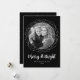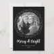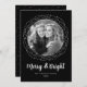 Festivt svart helgdag med ditt foto omgivet av en vit prickad cirkel ram. "Merry and Bright" visas i ett fet, vitt, handskrivet skript med ditt namn och året som visas nedan. Kortet återgår till ett vitt prickat mönster med svart bakgrund.