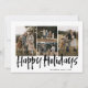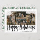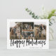 Svart Modern Lettering Fyra Photo Lycklig Helgdag Card har fyra foton framtill och ett annat foto på baksidan med plats för ditt längre meddelande.