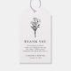 Lägg till de här märkrna för blommigt av anpassade till händelselagarna. Den har en svart, modern blommigt bouquet-konst med streck mönster. Anpassa genom att lägga till ett meddelande, namn och händelsemedatum. Dessa minimalistiska märkre för gåvor till blommigten är perfekter för bröllop, möhippor, babyduschar, födelsedagar och så mycket mer.