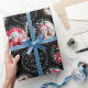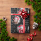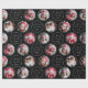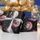 Christmas gift wrapping paper feature modern Merry Christmas script and botanical leaves wreaths, with personalized family name and 6 photos in black and white. simple and elegant.