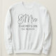 Det moderna och avslappnad chicens svarta kalligrafi-skript "Mrs" kvinnans tröja i bröllop har anpassningsbar som kan vara personlig med brudens nya gifta efternamn och bröllop-datum. Perfekt för den nye till bäran på smekmånaden och därutöver!