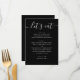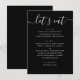 This black wedding menu card features a modern, minimalist design with a clean layout and a relaxed script heading. The “let’s eat” title adds a warm, informal touch, making it a great fit for couples who want their reception to feel stylish but not overly formal. The simple structure keeps each course easy to read, while the contrast between the script and classic text creates a balanced, contemporary look. It works beautifully for seated dinners, casual receptions, and modern wedding setups. A great choice for minimalist, contemporary, and relaxed wedding styles, especially for couples who prefer a clean design with a friendly, approachable feel.