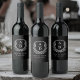 Black Monogram Bröllop Blommigt Vapensköld Vinflaska Etikett