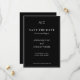 Gör ett varaktigt intryck med vårt svarta Monogram Bröllop spara datum-kort. Med en elegant svart bakgrund och modern monogramdesign kombinerar det här eleganten tidlös charm med contemporary stil. Perfekt för par som vill ha en förfinad, sofistikerad beröring, det anger tonen för en chic, ett minnesvärt firande.