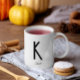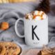 Monogram Namn Kaffe White Mugg skapat med szdesign. Minimalistisk men snyggt, vit personlig mugg med svart inledande brev monogram och namn över brev. En gåva eller personligt tillbehör som är lätt att anpassa (klicka bara på perfekten PERSONALIZE).