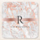 Black Monogram & Namn, White & Ro Guld Marble Underlägg Papper Kvadrat