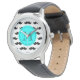 Black Mustache Mönster, Aqua Blue Monogram Armbandsur