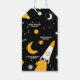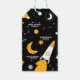 Black Nght Himlar Rymden Rocket Birthday Presentetikett