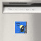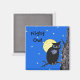 Den här kvadratiska magneten har en svart uggla med blå ögon sitta i ett svart träd mot ett blått himlar med gult måne och stjärnor med texten Night Uggla.