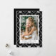 Festivt helgdag-kort med lodräts foto inramat i vitt med en svart och vit nordisk snöflingmönstrad bakgrund. Anpassa det nordiska jullkortet för snöflingor med anpassningsbarna hälsning och namn i svart skrift. Kortet återgår till visning av ditt personliga meddelande.