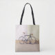 BLACK OCH GRÅTT CITY BIKE LEANING ON WHITE WALL TYGKASSE