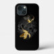 Svart och guld smyckesfåglar på gråttets bakgrund dekorerade med växter. Judiska fåglar. Golden bird. Guld fågel.