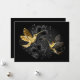 Svart och guld smyckesfåglar på gråttets bakgrund dekorerade med växter. Judiska fåglar. Golden bird. Guld fågel.