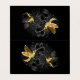 Svart och guld smyckesfåglar på gråttets bakgrund dekorerade med växter. Judiska fåglar. Golden bird. Guld fågel.