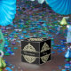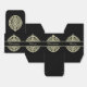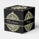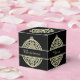 Svarta och guld är invecklade, ornera mönster på julfavärdesboxar.