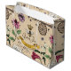 Presentera dina gåvor i stil med vår chic vintage-stil Large Gift Bag i elegant light guld, personlig med mottagarens namn på både framsidan och baksidan. Presentpåsens framsida och baksida visar vår tidslånga drottning Bee Royal Guld Krona teckning i svart bläck. Handdragen av Nathalie Portet. I detta självklara mönster visas invecklade detaljer om en vanlig bidrottning och hennes royal guld krona, omgiven av charming blommigt inslag. Namn under drottningen i rullan vintage-stil Guld är anpassade. Vare sig det gäller Mors dag, födelsedagar, årsdagar, möhippor eller andra speciella evenemang, så kommer den här presentpåsen säkert att glädja dina kära.