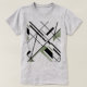 En contemporary, abstrakt design består av olika svarta och ljusa oliv grönt linjer och former, som kombineras för ett dynamiskt och jazzistiskt utseende..Bildas här på en grått t-shirt av "lätt stål", men finns även i ett antal stilar och färg. Med inspiration från det moderna stil i mitten av århundradet utökas designen till en varierad konstnärlig kvalitet för ett mångsidigt och sofistikerat tillägg till din avslappnad och vardagliga bära (oavsett om det är hemma, socialiserat med vänner, sport eller om man springer omkring). Tröskans design som "bärkraftig konst" ger också en känsla av ditt individualiserade stil, vilket bidrar till känslan av att vara "tillsammans" och kreativ i dina personliga val.