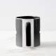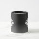 Mugg har en geometrisk utformning med anpassadet namn och monogram i en vit marmor och silver ram i en svart ombre-bakgrund.