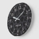 Lägg till ditt namn eller din familj namn i en svart pander eller ett svart leopard-djur i päls med fläckar över en mörk grått-bakgrund. Grått-nummer för timmarna och markeringarna för varje minut för att matcha grått klocka händer, eller välj svart.