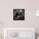 A black panther themed poster wall art. On the front is an illustration of a majestic black panther with fur like molten black and gold, laying on a cliff ledge bathed in ethereal moonlight. Intricate carvings adorn crumbling stone pillars, and bioluminescent flora casts a soft, otherworldly glow. The scene is rendered in a rich, textural oil painting style with thick, .