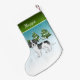 Black Parti-färg Mini Goldendoodle Winter Forest Liten Julstrumpa