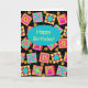 Säg "Grattis på födelsedagen" till ett kvarter eller älskare med detta färgstarka, helt anpassade hälsningskort. Lägg till ditt eget ord och namn. Känslan ord inuti kortet kan anpassas till ditt eget ord. Den här originalfiguren gör en pulserande färg-anteckning eller hälsningskort. Kvinnografik som bygger på originalkonst har favoritlappar av lapptäcke plus unika block i vibrerande och dynamiskt färger av orange, gult, rosa, turkos och kalkgrönt som dyker upp på en svart bakgrund för en vacker färg-palett. En turkosa teal blue oval finns på kortets framsida för att säga "Grattis på födelsedagen" eller andra hälsning efter eget val. Visa kärlek för att du ska kunna klämma med de här konsformade designerna med andra konsthantverk. Quilt art är originalkonst från tyg och formgivare Phyllis Dobbs och finns i en textilsamling från Quilting Treasures. Den här konsten finns på andra produkter och i flera färg-miljöer. Fler produkter finns tillgängliga i Phyllis Business withFlair-butiken. Matcha med samordning av frimärke, kuvert, klistermärken och returetiketter.