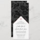 De marockanska inspirerade Aesthetic Rosa Accents Black och Grått Damask Swirl bröllopsinbjudningar. Mehndi Indian Inspired Aesthetic Bröllop Theme. Vintage Damask Black, Grått och Peachy Rosa Bröllop. Minimalistisk modern och enkel..