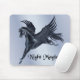 Fantasy-design med en flygande svart Pegasus och text som säger Nattmagi.