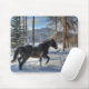 En stilig Percheron-hingst, energiskt i det första Winter-snön, på en avlägsen vildmarksranch, skapar en fantastisk fotodesign som skapar en vacker fotodesign för denna kvalitetsmummi. Bara perfekt för häst-älskare! Skye Ryan-Evans-fotografi ©.