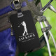 Den här designen har en golfer som växlar en klubb och har två fält som du kan använda att anpassa - kanske med ett namn och golflag eller klubb.