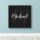 Personlig Monogram och Family Namn Gift med namn i ett vitt, modernt typsnitt stil och monogram i grått modernt typsnitt stil som bakgrund på svart bakgrund.