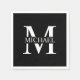 Personlig Monogram- och Namn-presenter med personlig vit monogram i klassiskt serif font stil med box av namn i mitten på monogram på svart bakgrund.