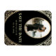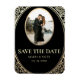 Elegant, lyx, vintage, chic, svartvitt och guld bröllop spara datum, inbjudande magnet, med Art-deco blommigt ram och foto av paret.