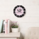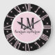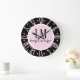 This elegant wall clock features a black and soft pink bow design paired with a personalized script monogram for a refined, timeless look. Designed with clean typography and a balanced neutral palette, it complements modern offices, bedrooms, and thoughtfully styled home spaces. The minimalist composition offers quiet sophistication, making it ideal for professional environments, personalized décor, or elevated gifting. A subtle statement piece that blends function with understated luxury.