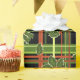 Denna julomslutning, papper av svart bakgrund med rött och grönt pläterad, har handmålat kapade klåpor som är utspridda överst för en festlig utformning som kommer att se underbar ut under vilket Julgran som helst. Du kan göra mönster mindre eller större på den här presentfigurationen.