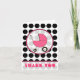 Ett tackkort med en svart polka-punktbakgrund med rosa trim. Fronttexten lyder "Tack" och kan anpassas. Illustration av en vagn i shock rosa i baby inuti ett matchande cirkelformat ram. Lägg till ditt eget meddelande inuti. Leta efter matchande inbjudningar i kategorin "Baby Shop" i Rosa Schoolhouse Store.