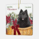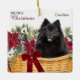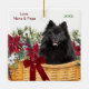 Här är en söt Helgdag prydnad som skulle ge en underbar gåva till ett barnbarn, son, dotter eller någon annan. Båda sidor av prydnadsämnet har en bild av en basket av röda poinsettianska blommar, vita blommor och gräs-biffsprit. I mitten finns en beundransvärd svart Pommern-hund. Torktumlaren basket dekoreras med en röd båge. På framsidan står grönt och röd text som lyder "God jul, och namn. Baksidan har din namnteckning och året.