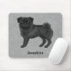Black Pug Cute Tecknad hund med eget namn Grått Musmatta