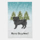 Black Pug Cute Tecknad hund Snowy Winter Forest Kökshandduk