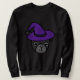 Black Pug med Lila Witch Hat och Spider Friend Lång Ärmad Tröja