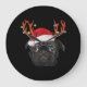 Black Pug Santa Christmas Reindeer Christmas Light Stor Klocka