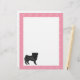 Desteis ursprungliga tecknad illustration av en vältalig svart hund jackar färg Pug. Färg i mitten är ett vitt exempel på hur man skriver anteckningar, medan färg i gräns är rosa med mönster av rosa hjärtformer i olika storlekar.