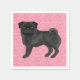 Black Pug Tecknad Mops Kärlek Heart Mönster Rosa Pappersservett