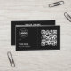 The front face showcases your logo in a clean circular frame alongside a large, scan-ready QR code — making it effortless for clients to visit your website, portfolio, or social media instantly. The back presents your name, title, and full contact details in a refined, easy-to-read layout.
