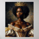 Den här poster ett vackert, elegant, mörk-flått verk med intrikat, utvecklat royal-klänning och en smyckad tiara - klassisk oljemålning porträtt stil med modern tvist! Den här häpnadsväckande kvinnan är från den afrikanska diasporan. Hon har kort hår som är präglat av bol.