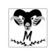 Svart ram med tvinnade horn, gjord i en silhuettstencil hybid stil. Konstruktionens överkant är fårhuvudet och grund i formgivningen är en svart vind, mellan står det: "M" m är ett slags monogram.