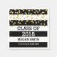 Klass av 2018 studentfest blöjor med svartvit rand mönster och glamorerad guld konetti. Observera att guld endast har fotoeffekt.