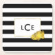 Black Rand & Guld Peony Monogram Underlägg Papper Kvadrat