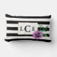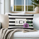 Dekorkudden har chic svart och vitt rand med en lila pansy-blomma och faux guld gräns. Anpassa med ett monogram, namn eller text som du vill ha!